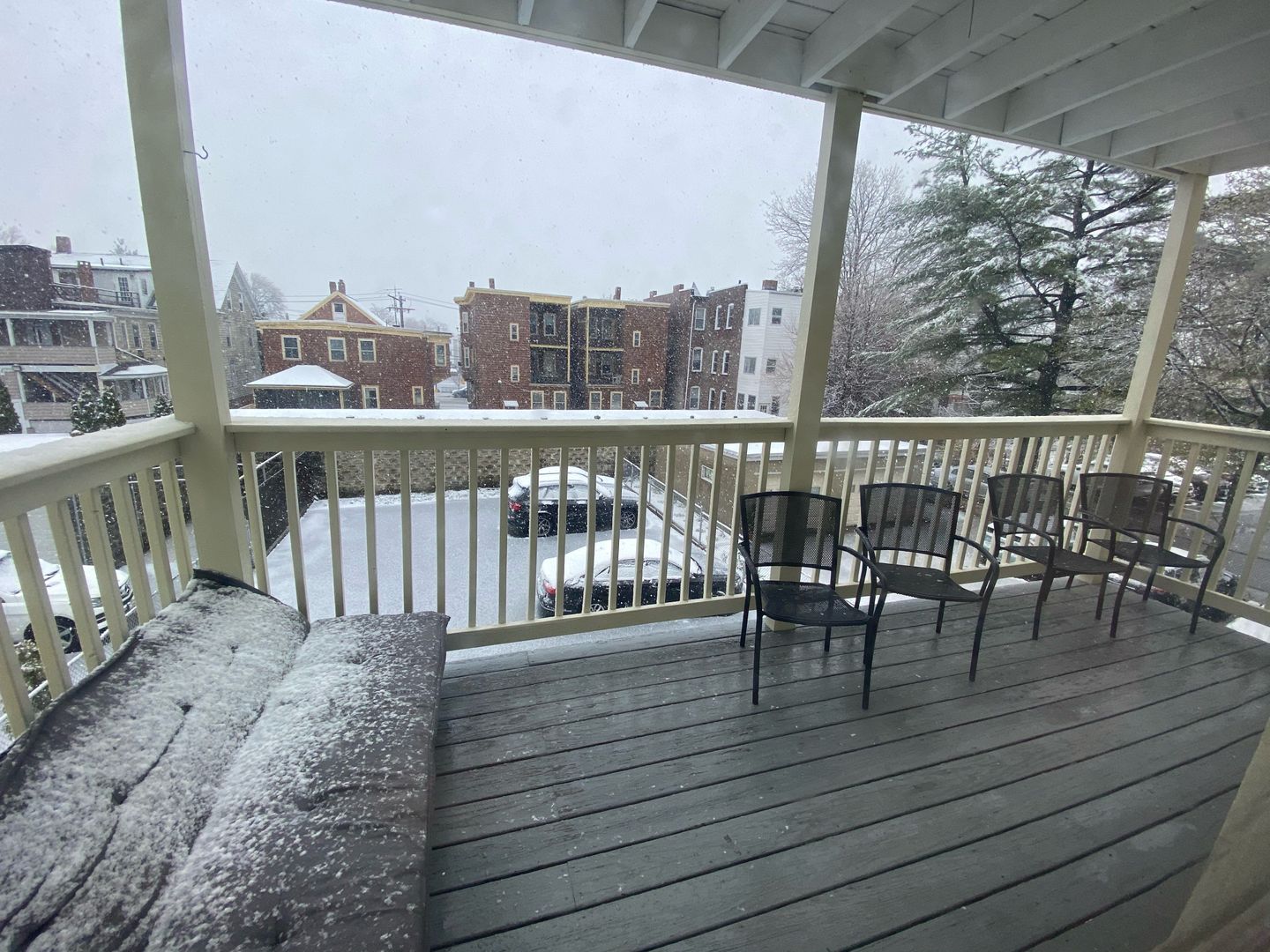 The apt includes: hardwood floors, white walls, laundry in the basement, dishwasher, large eat in kitchen with many cabinets, new windows to help with heating costs, front and rear porches, and parking!