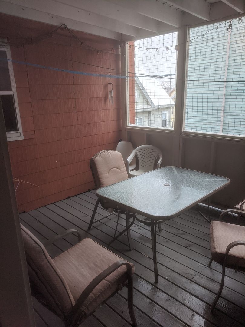 Apartment includes hardwood floors, white walls, laundry in the basement, a shared front and rear porch, and one of the most awesome locations of all. Parking for 1 off street included.